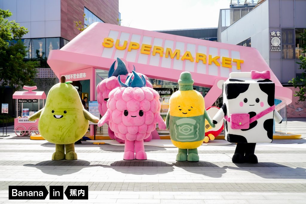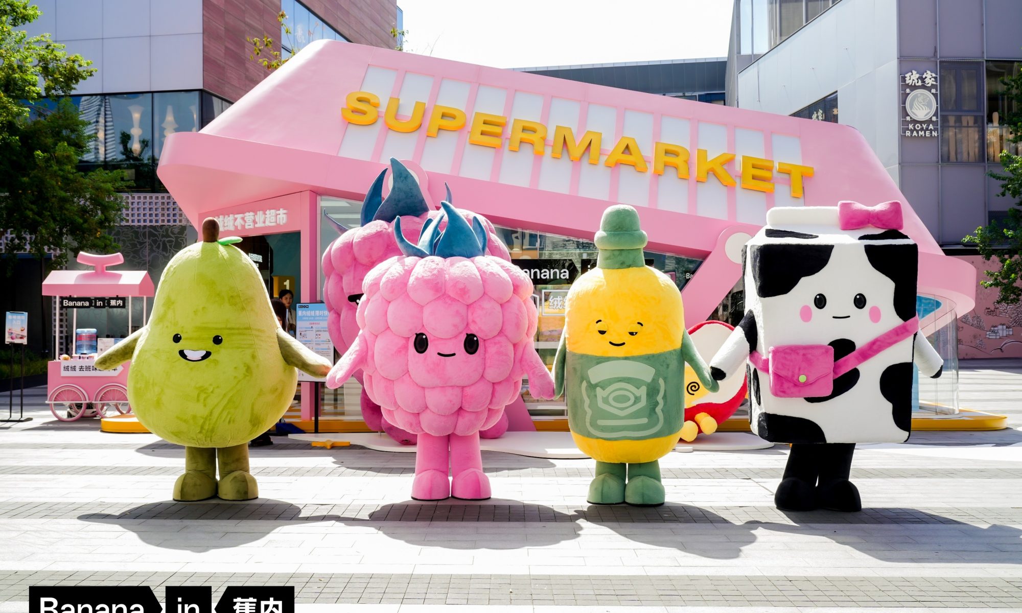 「超级市场 今日不营业」蕉内绒绒系列限时快闪店以超市为创意原型,将”树莓””苹果”等日常元素设计成多个主题情绪站点,构建出一个既熟悉又新奇的”不营业”体验空间。