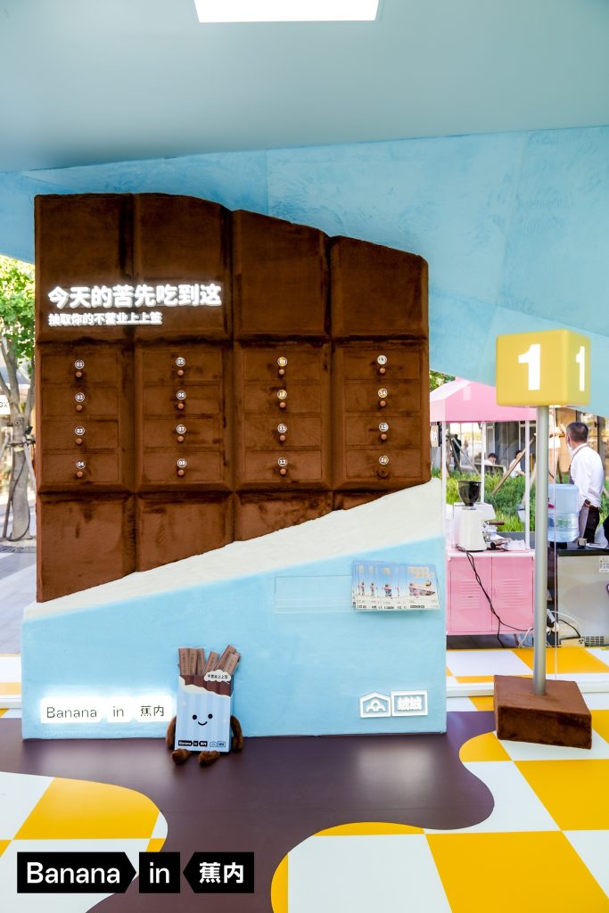 整个空间充满精心设计的反叛细节:空置的货架、反转悬挂的工牌、贴满”离职宣言”的互动打卡墙,与拟人化的水果IP形象共同构成一个兼具拍照传播与情感共鸣的沉浸式场景。参与者从写着”今天的苦就吃到这里”的巧克力区启程,在领取专属工牌和探索地图后,正式开启一段象征逃离高压日常的”逃班计划”。在糖果区,参与者可通过注册会员参与扭蛋抽奖,收获”卷不动了”趣味礼物,为疲惫日常盖上一枚象征退场的印章;最终抵达苹果区,凭回收的工牌兑换”花式躺平券”,以”打包回家躺躺平”的仪式感完成整段体验。